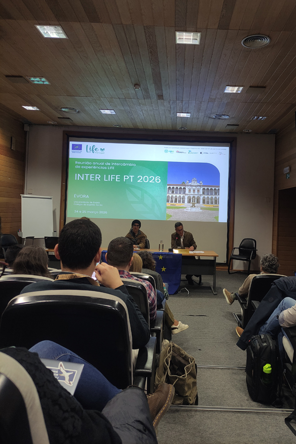 INTER LIFE is based on the sharing of experiences between LIFE projects, promoting networking and fostering the development of partnerships for future projects. Under the theme “The LIFE Programme in the Iberian Peninsula”, this 5th edition featured national projects due to end in 2026, projects now getting underway, winners of the 2024 call, and projects developed by the University of Évora, the event’s host, as well as projects coordinated by teams from Spain involving national partnerships. The programme also included a field visit to the LIFE Scrubsnet Project at Herdade Terra de Freiras.