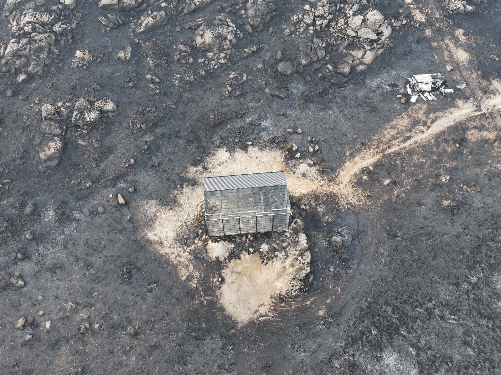 Estação de aclimatação e habitat envolvente, após o incêndio de agosto 2025. Fotografia Faia Brava.