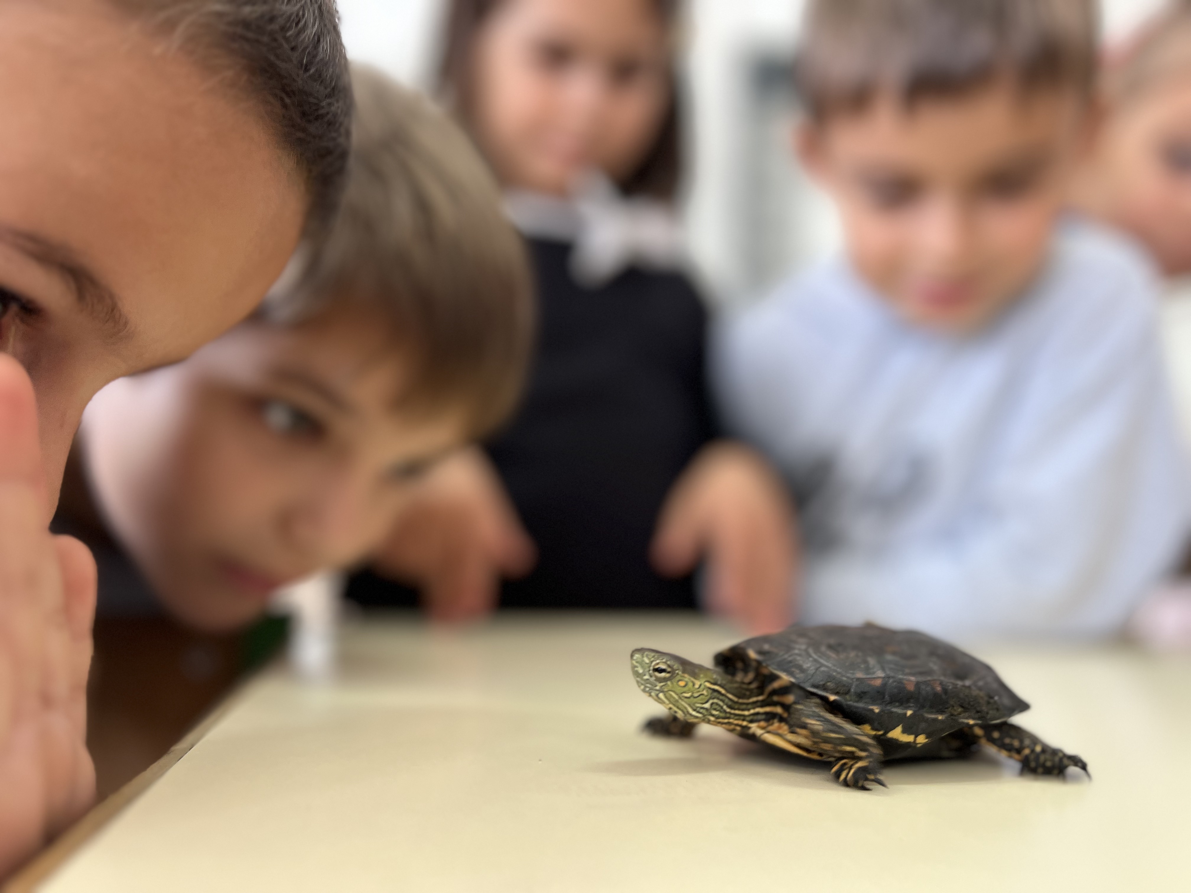 Com foco numa abordagem prática e participativa, ainda em sala de aula, os alunos tiveram a oportunidade única de ver de perto um cágado-mediterrânico (Mauremys leprosa) - outra espécie de cágado nativa -, que tem uma história especial. Criado em cativeiro, foi entregue à Palombar, após uma ação de sensibilização, sendo, posteriormente, transferido para o Centro de Recuperação de Animais Selvagens do Hospital Veterinário da Universidade de Trás-os-Montes e Alto Douro (CRAS-HV-UTAD), onde está a passar por uma quarentena e (re)adaptação à vida selvagem, antes de ser devolvido à natureza, na primavera deste ano.