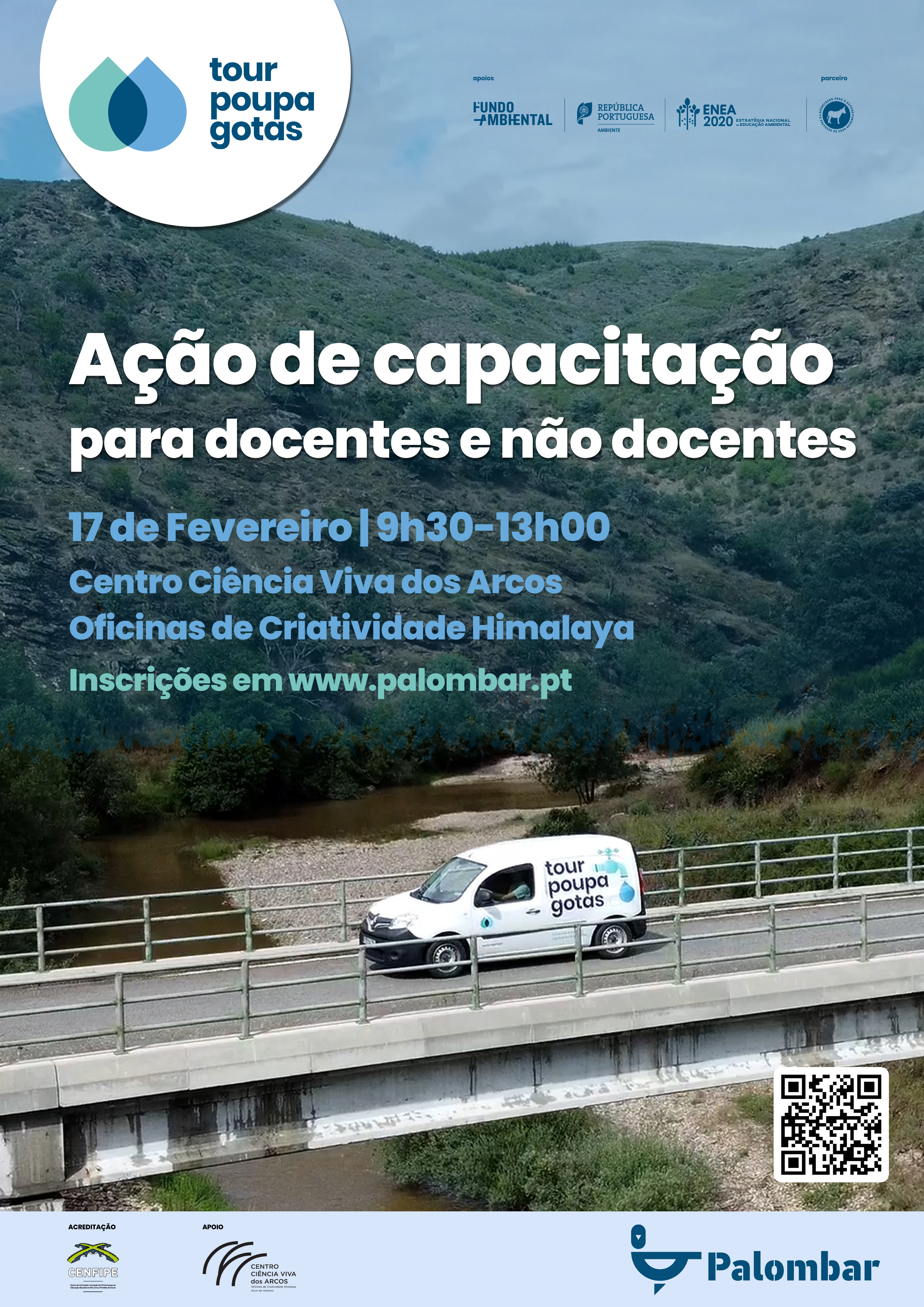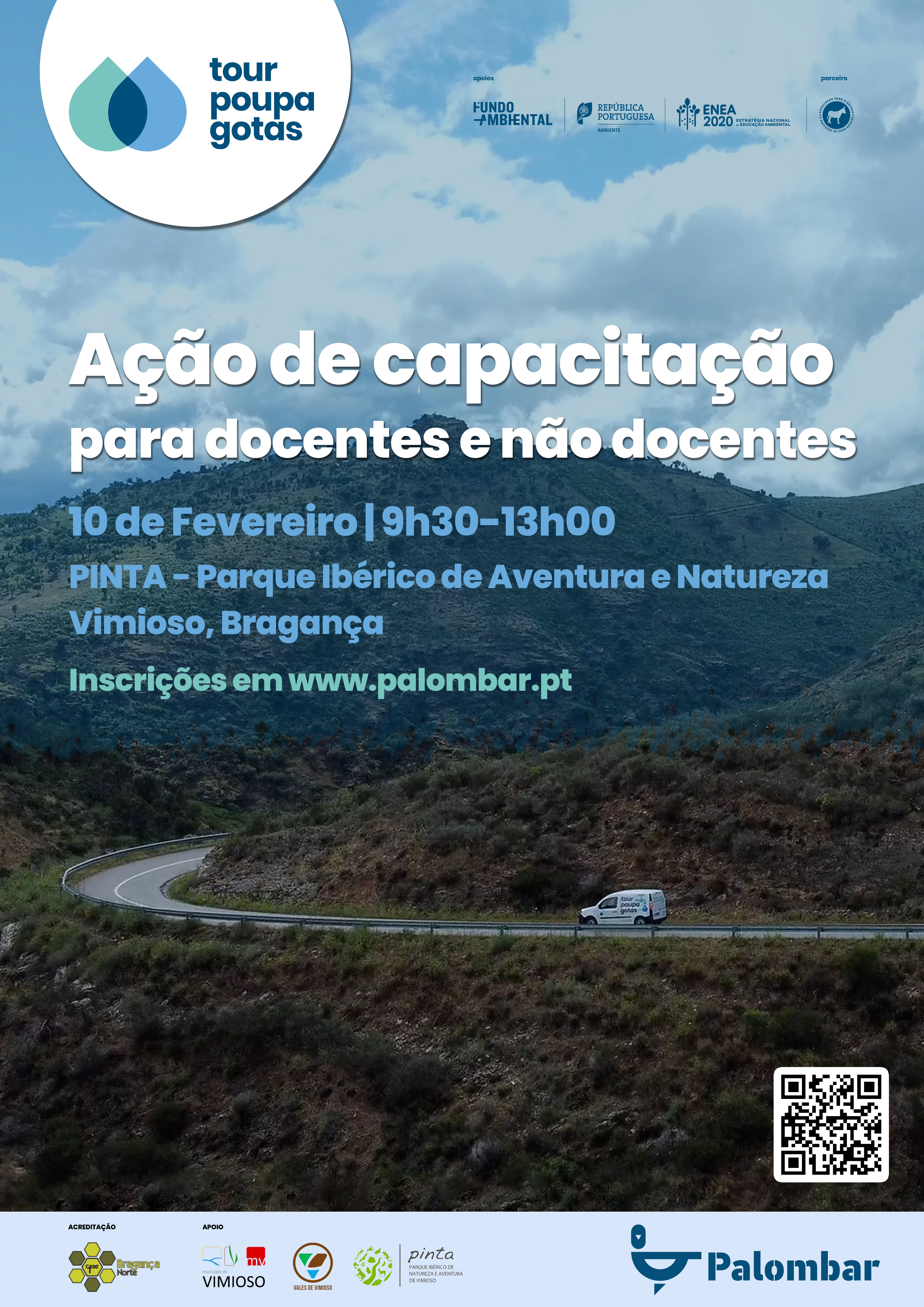 A Palombar - Conservação da Natureza e do Património Rural vai organizar, no âmbito do projeto "Tour Poupa-Gotas", duas ações de capacitação para docentes e não docentes, que terão lugar em Vimioso, no distrito de Bragança, no dia 10 de fevereiro, e em Arcos de Valdevez, no distrito de Braga, no dia 17 de fevereiro. A formação é acreditada.