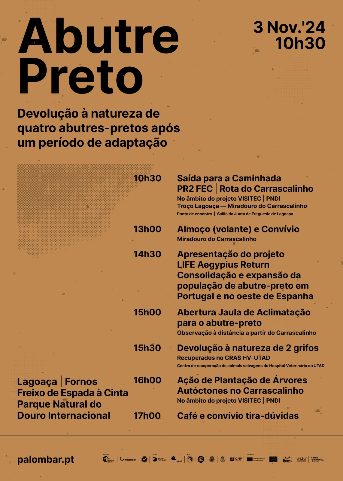 A jaula será aberta numa jornada dedicada à apresentação e divulgação do projeto, a decorrer em Lagoaça e Fornos, e que também integra uma caminhada, a devolução à natureza de dois grifos e ainda uma ação de plantação de árvores autóctones em território do PNDI, no contexto do projeto VISITEC da Associação para o Estudo e Protecção do Gado Asinino que tem como parceiro a Palombar.