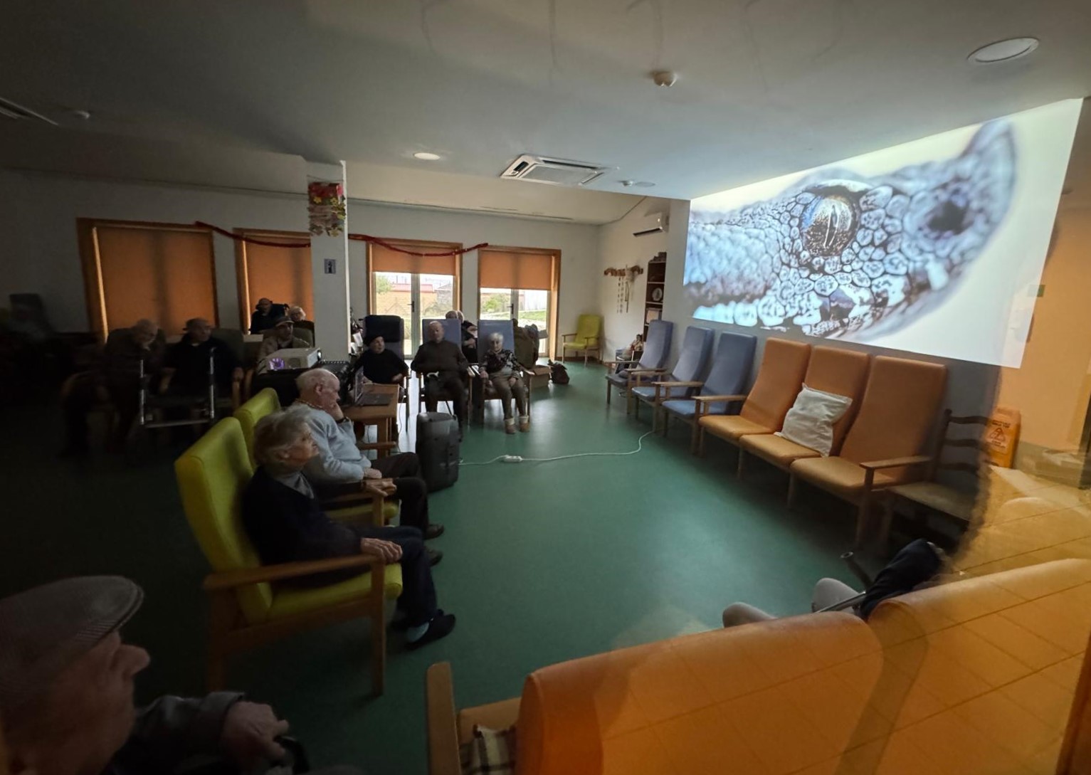 Sessão de cinema num dos lares da Santa Casa da Misericórdia de Miranda do Douro. Fotografia Palombar.