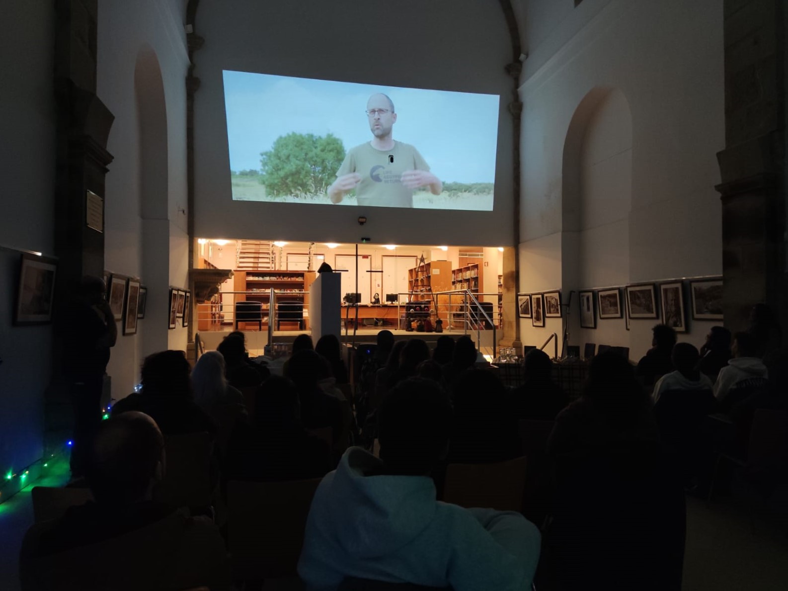 Biblioteca Municipal de Miranda do Douro ficou cheia na primeira sessão do Ciclo de Cinema Ambiental Itinerante do projeto Futuros Partilhados. Fotografia Palombar.