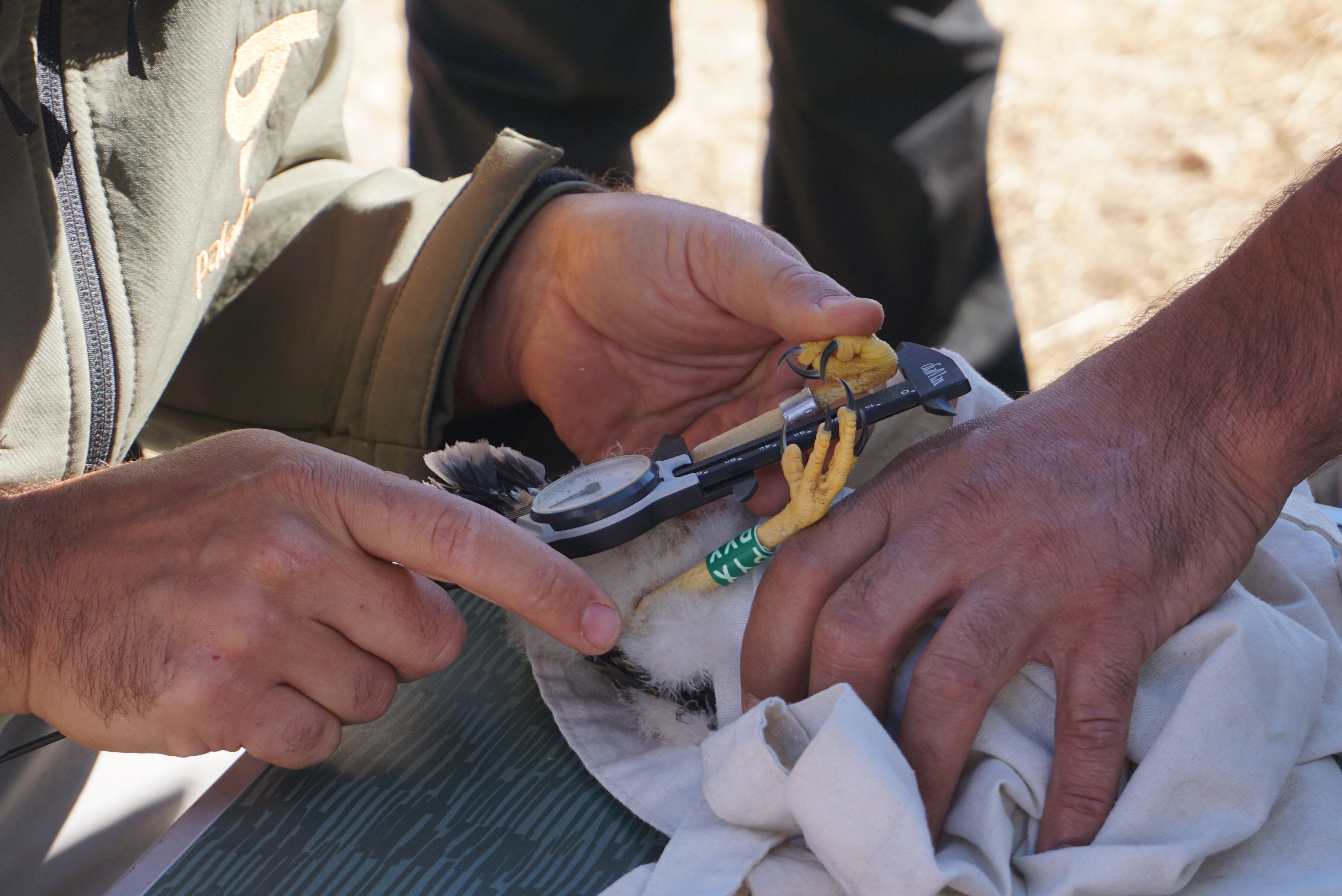 Juvenil marcado com GPS pelo biólogo Carlos Pacheco do BIOPOLIS-CIBIO. Fotografia Filippo Guidantoni/Palombar.